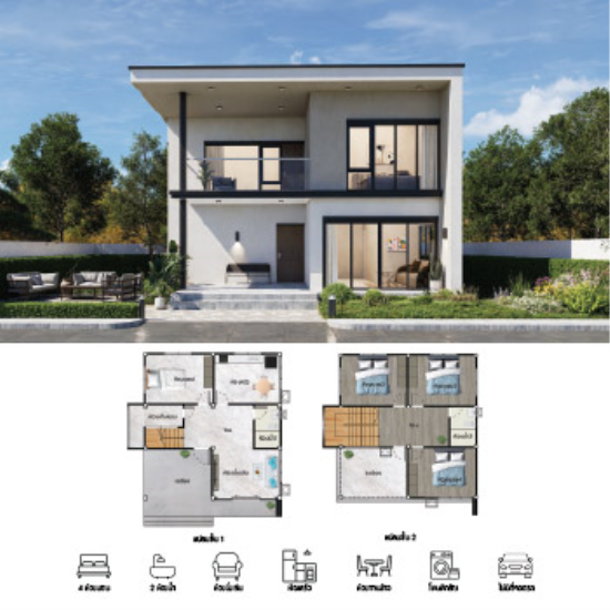 บ้านเดี่ยว 2 ชั้น รหัส.MHMD-203 พื้นที่ใช้สอยรวมประมาณ 160 ตร.ม.