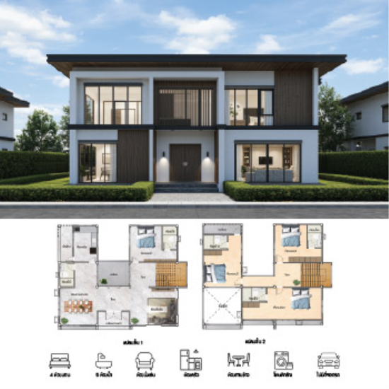บ้านเดี่ยว 2 ชั้น รหัส.MHMD-204 พื้นที่ใช้สอยรวมประมาณ 248 ตร.ม.