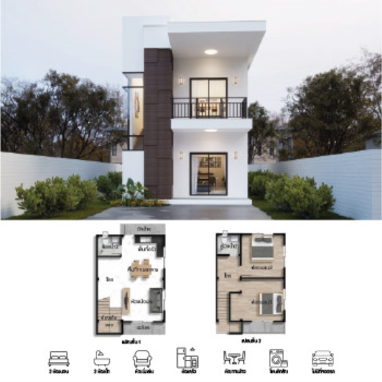 บ้านเดี่ยว 2 ชั้น รหัส.SH-21 พื้นที่ใช้สอยรวมประมาณ 96 ตร.ม.