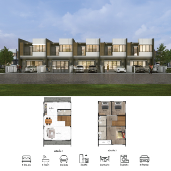 แบบบ้านทาวน์โฮม 2 ชั้น รหัส.TH-24 พื้นที่ใช้สอยรวมประมาณ 116 ตร.ม.
