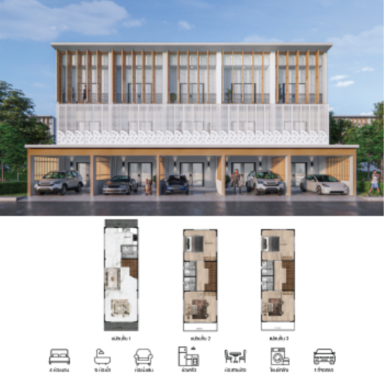 แบบบ้านทาวน์โฮม 3 ชั้น รหัส.TH-31 พื้นที่ใช้สอยรวมประมาณ 168 ตร.ม.
