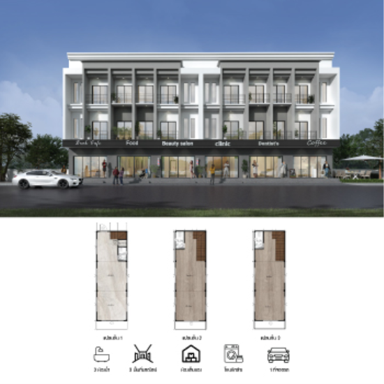 แบบคอมเมอร์เชียลโฮม 3 ชั้น รหัส.CH-32 พื้นที่ใช้สอยรวมประมาณ 159 ตร.ม.
